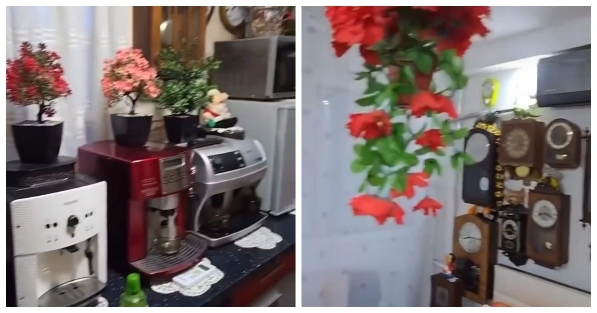В этой квартире собраны десятки часов и кофемашин. Механизмы одновременно тикают и шипят, превращая помещение в живую инсталляцию времени и кофе.