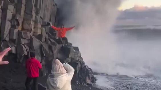 Мощная штормовая волна обрушилась на пляж Рейнисфьяра — одно из самых популярных, но в то же время самых опасных туристических мест Исландии — унеся нескольких посетителей в океан.