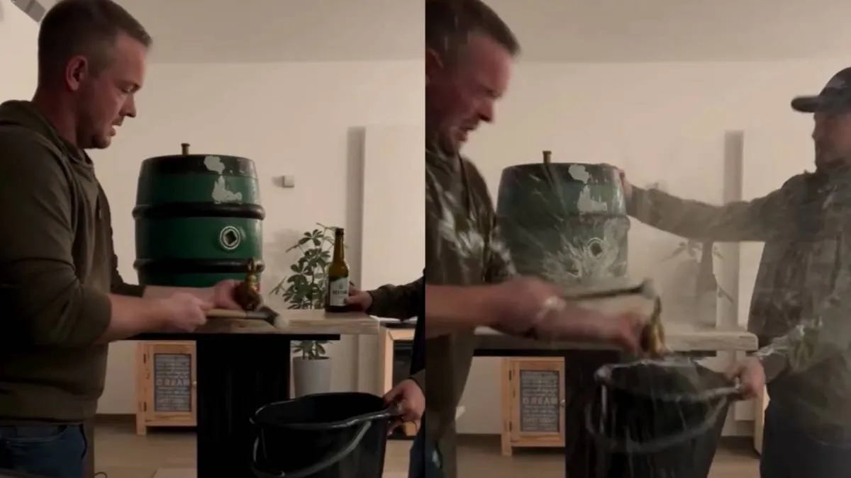 Пиво полилось рекой, даже ведро не спасло — зато публика получила настоящий фонтан и массу эмоций.