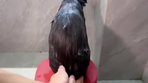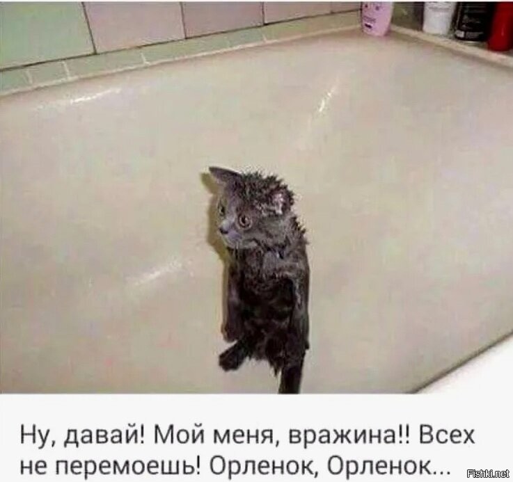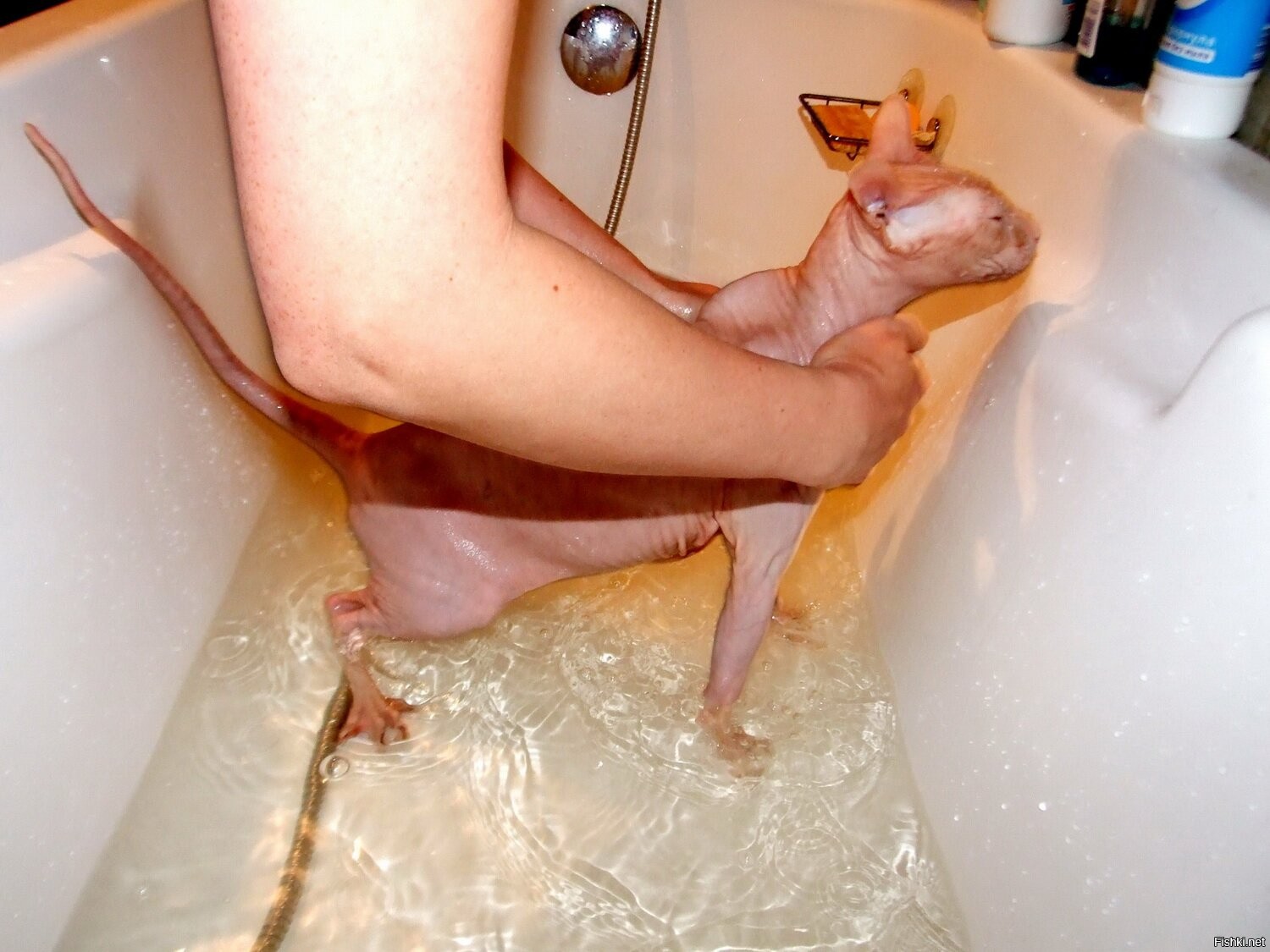 Послушный и терпеливый кот принимает водные процедуры. Может показаться, что это нейросеть, но нет.