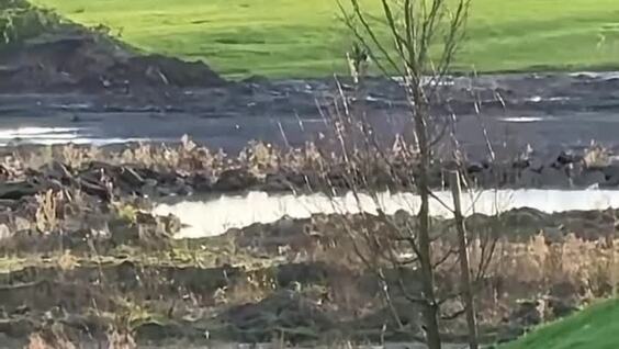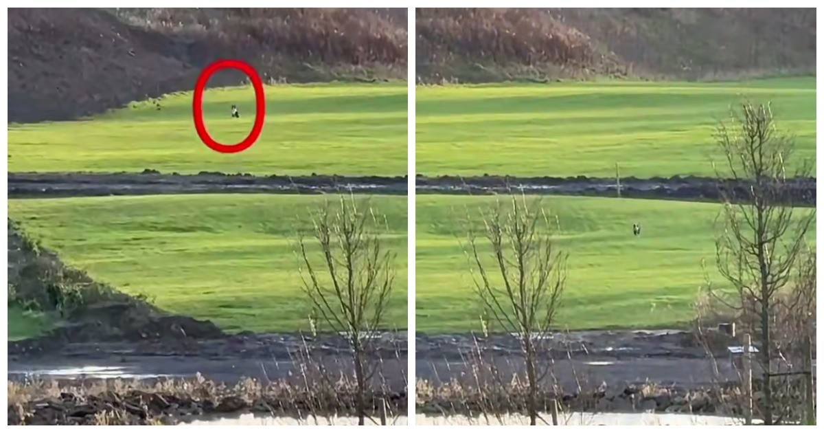 Женщина позвала собаку к себе, находясь от неё на приличном расстоянии. Питомец сразу же помчался к хозяйке по траве, грязи и лужам.