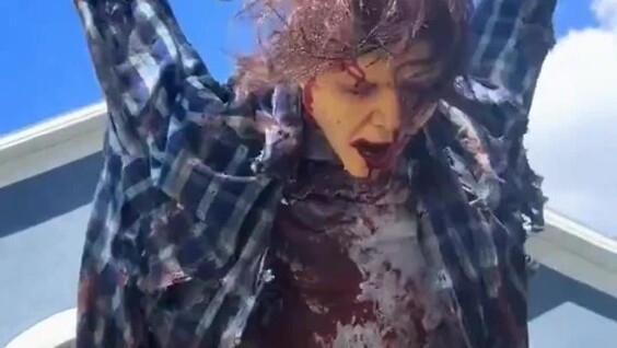Пользователь сети показал "украшение" на Хэллоуин во дворе одного из домов. Кукла с датчиком движения дарит незабываемые впечатления всем, кто к ней подходит.