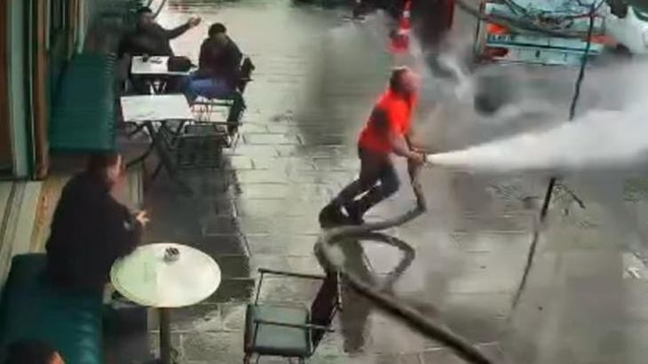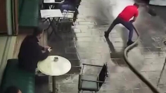 По словам клиентов, когда он мыл тротуар шлангом, тот вырвался из рук и устроил «водное шоу». Посетители, которые долго ждали свой чай, в итоге получили порцию воды совершенно бесплатно.