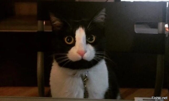 В сети нашли самого удивленного кота в мире. Окрас шерсти придаёт домашнему питомцу удивлённое выражение морды.