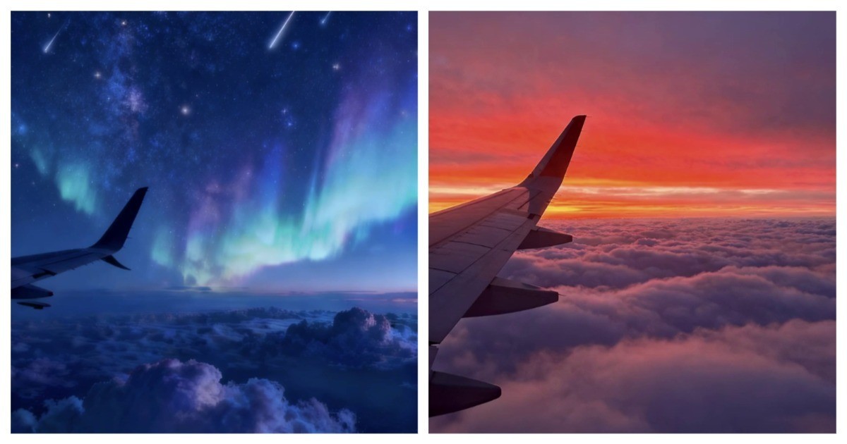 Пользователь сети показал, как относительно легко сделать красивый снимок из самолёта. Необходимо установить телефон за шторку иллюминатора, затем выставить длинную выдержку, а потом включить ночной режим без макросъёмки.