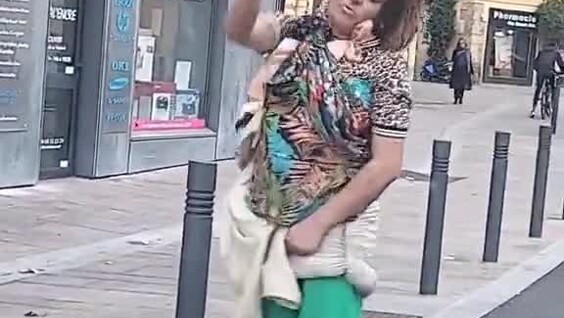 Музыка, доносившаяся из машины проезжавшего водителя, вдохновила женщину на импровизированный танец. Вскоре к ней присоединились другие прохожие.