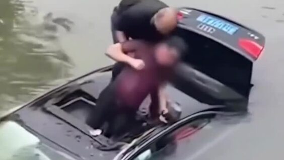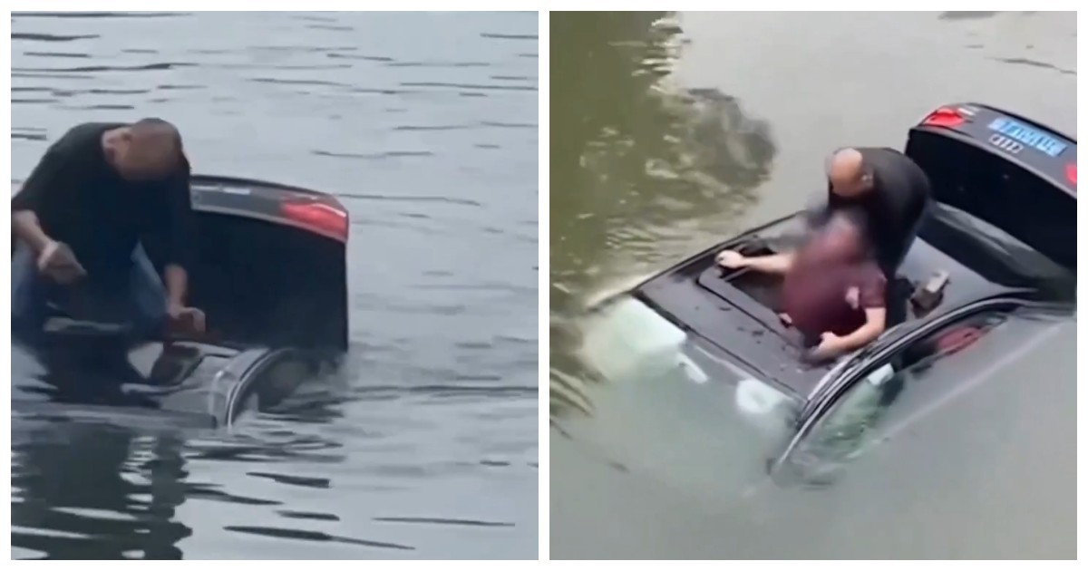 Во время попытки не сбить велосипедиста водитель автомобиля потерял управление и упал в реку. 40-летний Ди Шуанчэн заметил происшествие, схватил камень и разбил люк в авто, чтобы помочь водителю выбраться из машины.