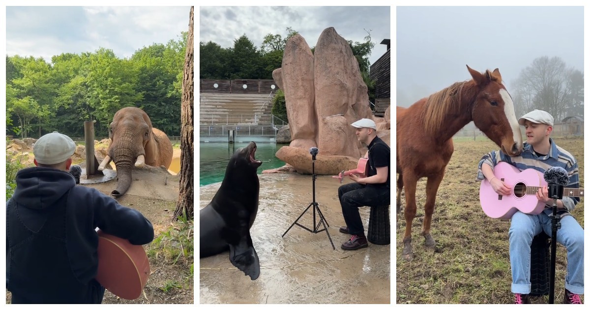 Блогер и музыкант Plumes весь год снимал, как поет песни животным в разных зоопарках мира – он собрал лучшие моменты своих выступлений, а его ролик за сутки набрал 12 млн просмотров.
