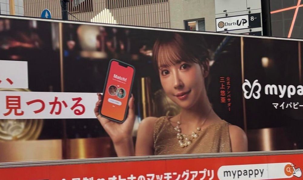 Амбассадор — бывшая порноактриса Юа Миками. Реклама уже висит прямо на улицах.