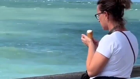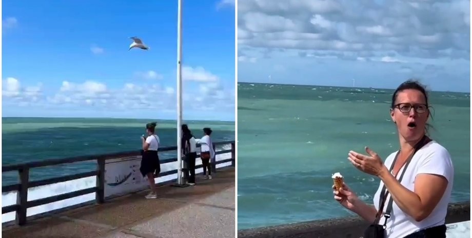 Жительница США наслаждалась мороженым на улице, когда рядом появилась чайка. Птица зависла в воздухе прямо перед женщиной и неожиданно клюнула десерт. Момент удалось запечатлеть на видео — на кадрах видно, как чайка аккуратно отщипывает кусочек и отлетает.