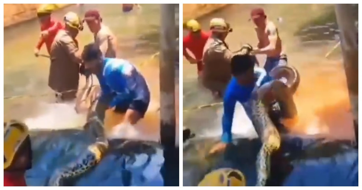 Чтобы извлечь рептилию, спасателям пришлось воспользоваться кувалдой. Затем анаконду, благополучно пережившую извлечение, передали зоопарку.