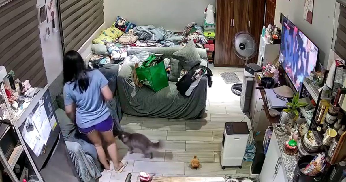 Камера наблюдения, установленная в квартире в Китае, запечатлела нападение кота на хозяйку. Питомец подошёл к девушке и вцепился ей в ногу.