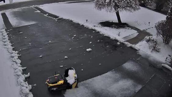 Демонстрация работы автономного робота для уборки снега. Он самостоятельно определяет уровень снега и и обходит препятствия.