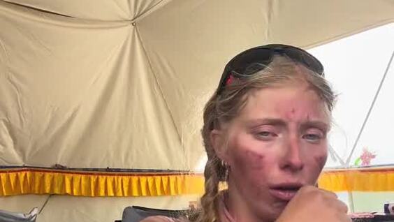 "Я чувствую себя ужасно. Моя шея, мое горло, мои легкие", — сказала она, едва дыша. Ее лицо было изранено ветром, губы потрескались, а голос звучал шепотом.