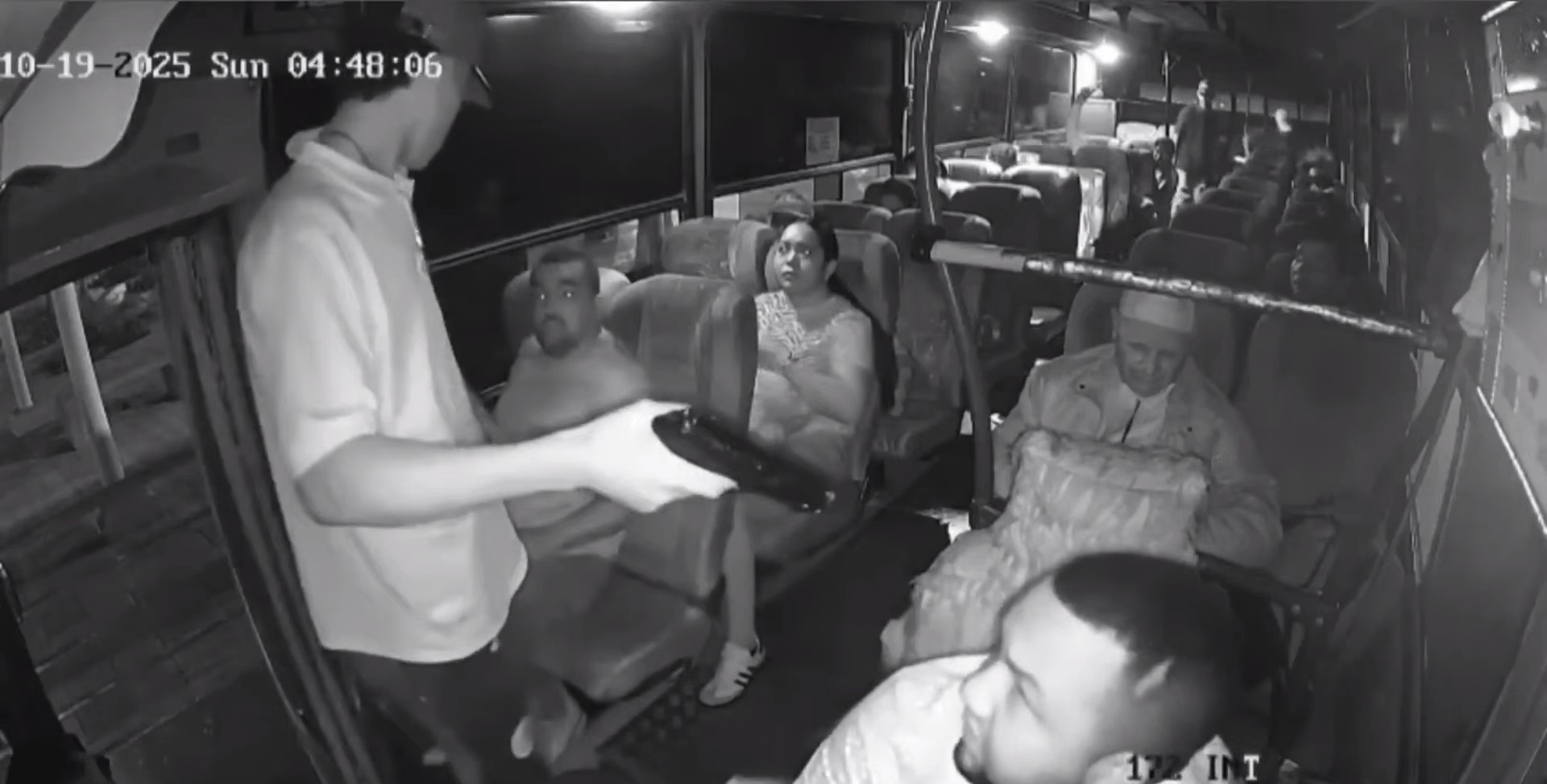 Кадры из салона автобуса, который ранним утром 19 октября должен был отправиться из Репелона в Барранкилью (это все в департаменте Атлантико на севере Колумбии). Рейс был отложен на несколько часов из-за банды грабителей, долго отиравшихся на автовокзале в ожидании, когда наберется побольше кошельков.