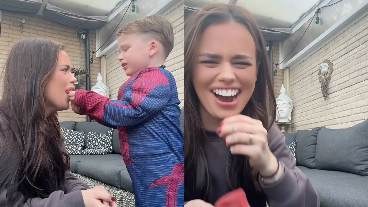 Женщина решила пошутить над маленьким сыном, прицепив к его игрушечному языку прищепку. Когда ребёнок дернул язык, он «оторвался», вызвав сначала испуг, а затем смех.