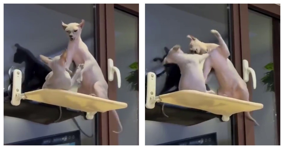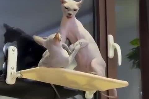 Разборка в кошачьем семействе. "Окорочка" разбушевались!