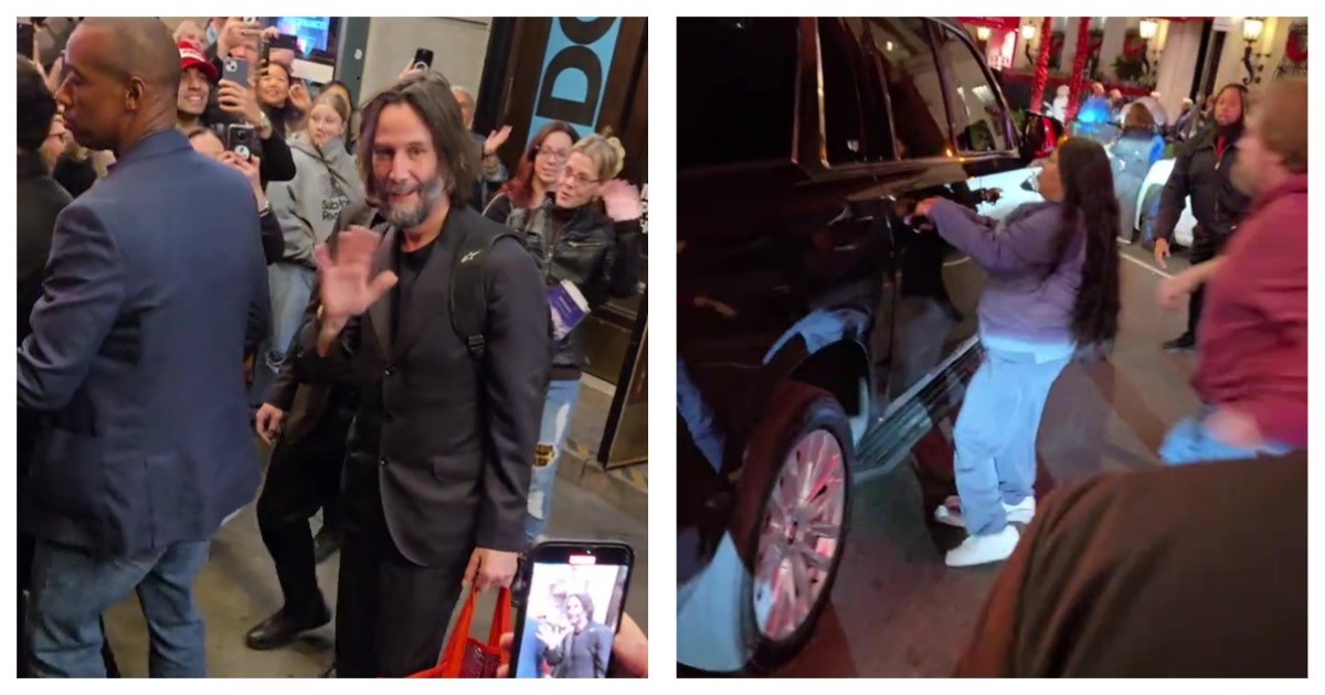 61-летний актёр Киану Ривз покидал нью-йоркский театр "Хадсон" после выступления, когда к нему попыталась пробиться чокнутая фанатка. Поклонница сумела прорваться через охранников и пыталась открыть дверь автомобиля.