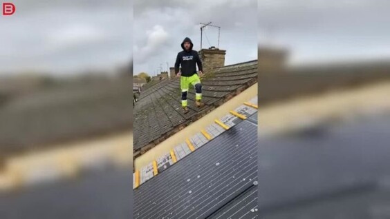 Парень установил на крыше солнечные панели и вместе с другом решил снять видео, чтобы похвастаться результатом. Однако он не ожидал, что съёмка закончится несчастьем: из-за дождя панели оказались скользкими, и во время записи он поскользнулся и упал с крыши.