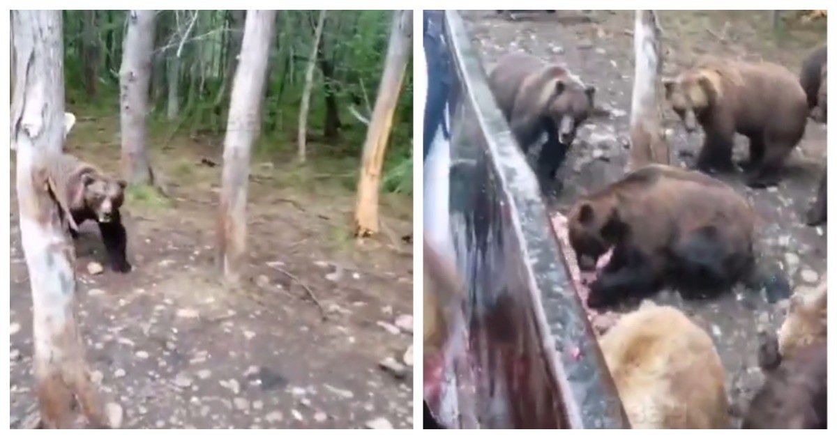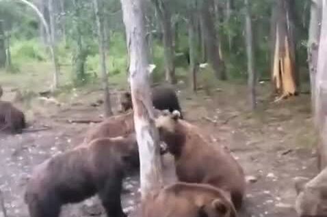 Рабочие подкармливают медведей рыбными (или мясными) отходами. Похоже, что за грибами в эти места никто больше одного раза не ходит.