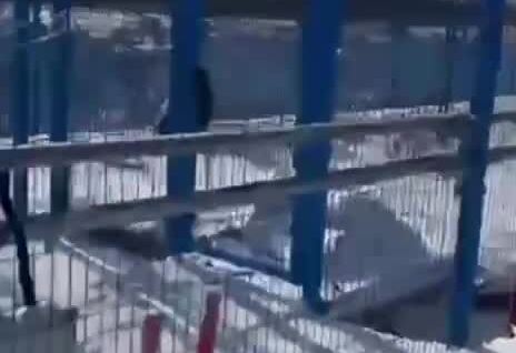 На кадрах видно, как медведь, явно уставший и дезориентированный, бродит по лабиринту из металлических сетчатых ограждений, не в силах найти выход.