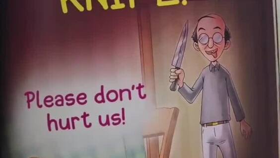 Женщина продемонстрировала детскую на первый взгляд книгу про няню. С каждой новой странице сюжет всё больше уходит в сторону абсурда, черного юмора и совсем недетских поворотов.