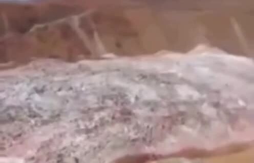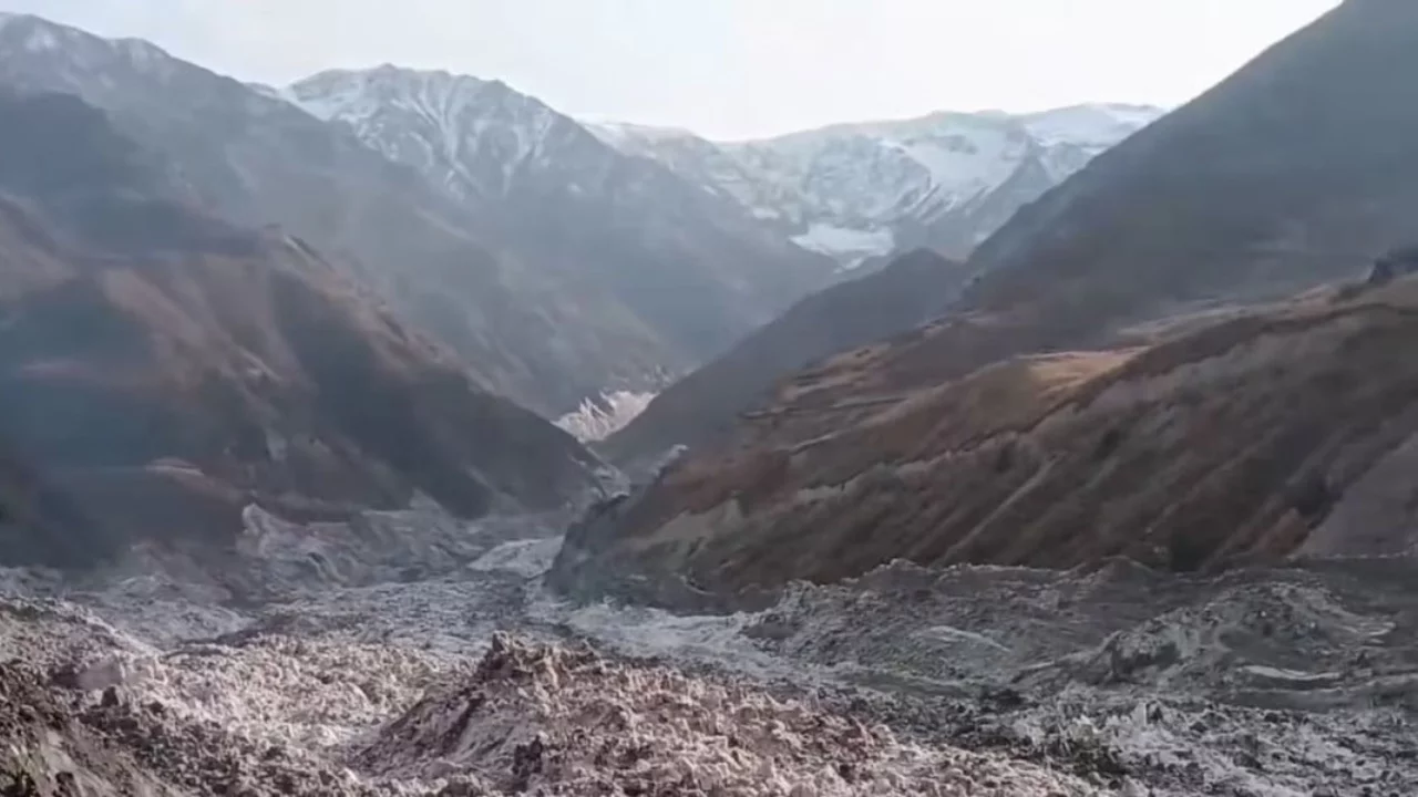 Очевидцам удалось снять видео схода снежной лавины. На нем видно, как лед вместе с грязью двигается на огромной скорости по ущелью.