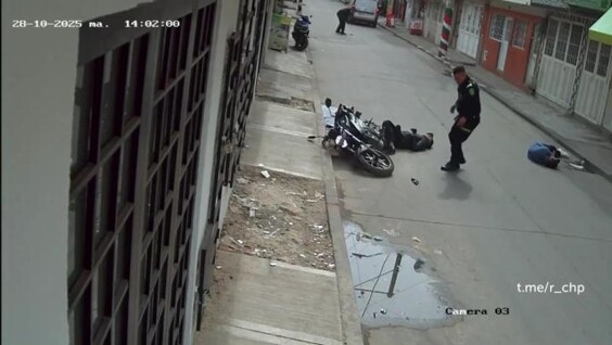 Камера наблюдения, установленная на одной из улиц Колумбии, запечатлела нападение киллера на мужчину. Спустя несколько секунд преступника нейтрализовали полицейские.