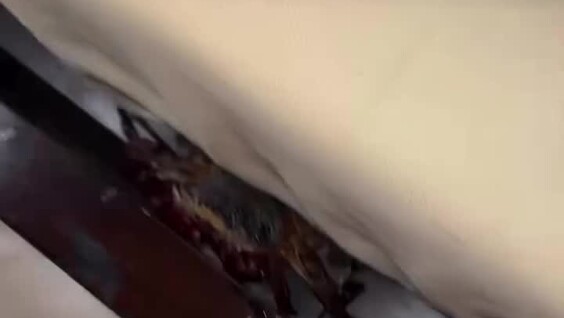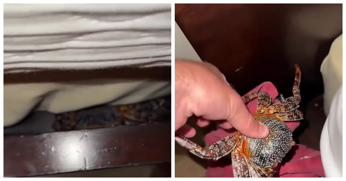 Тем не менее, звуки не прекращались. Тогда он продолжил искать причину и увидел нечто, от чего "кровь застыла в жилах": между матрасом и деревянной рамой сидел большой краб.