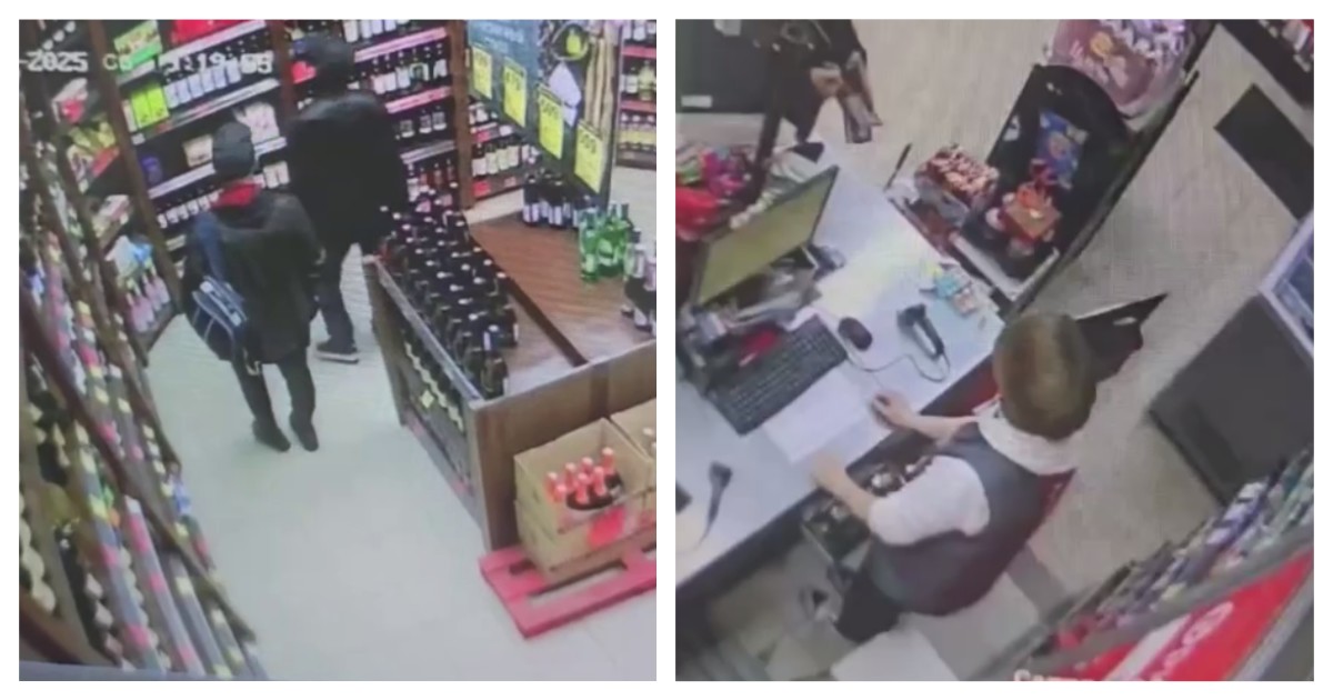 В объектив камер наблюдения попал факт кражи алкоголя из магазина. Кассир считает, что группа из трёх человек вошла в магазин с заранее продуманным планом. Один из них отвлекал внимание кассира, в то время как двое других незаметно забирали бутылки с алкоголем.