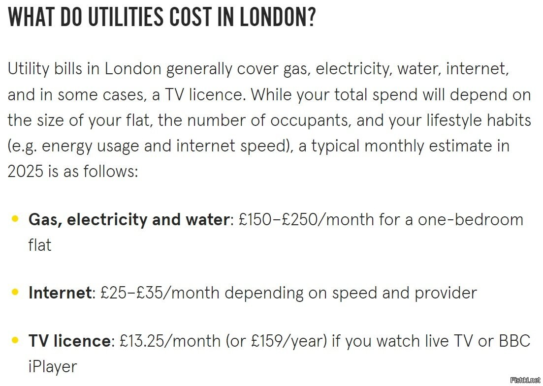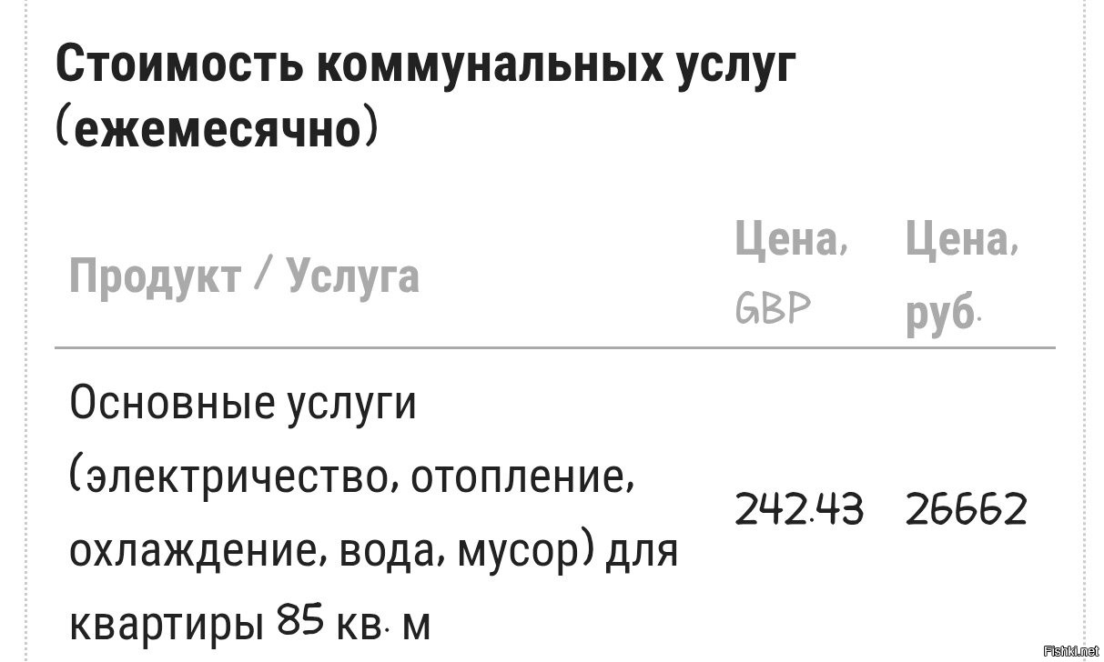 Средняя стоимость ЖКХ в Лондоне 240 фунтов = 25,5 тыс. руб