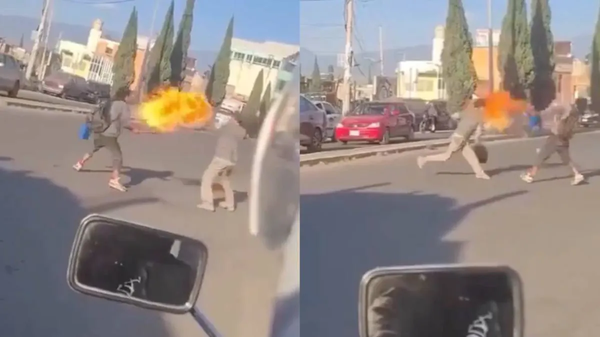 Конфликт на улице едва не перерос в опасную разборку, когда один из участников начал пускать огонь, удерживая противника на расстоянии. Драка превратилась в зрелище, которое могло легко закончиться обожжёнными бровями и ресницами.