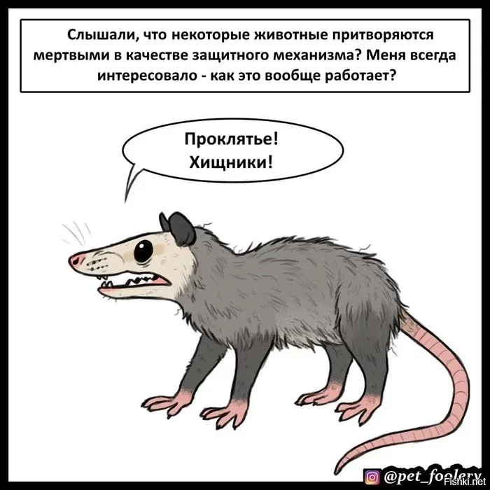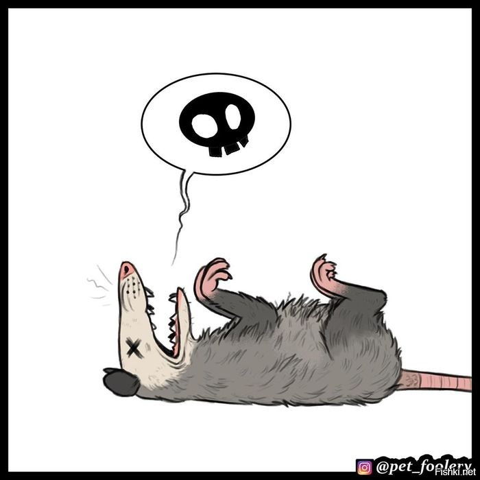 Наглядный пример того, как опоссум притворяется мёртвым, когда чувствует опасность