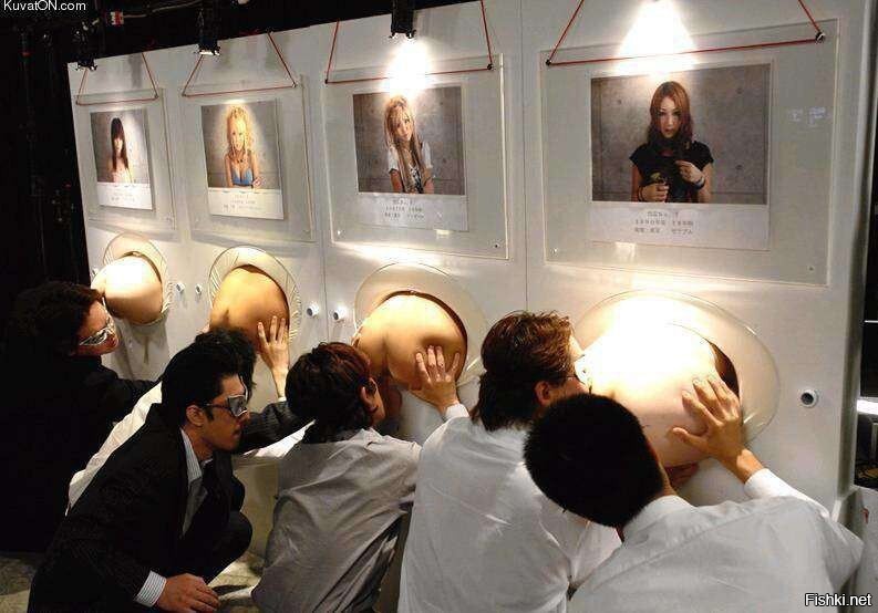 Знаете такое было шоу на японском ТВ "Угадай жену"? Где женщины стоят за ширмой и в кошки показывают только сиськи/письки/попы? Так вот, думаю, каждый муж свою признавал сразу. Но разве можно упустить такой шанс пощупать весь ассортимент?