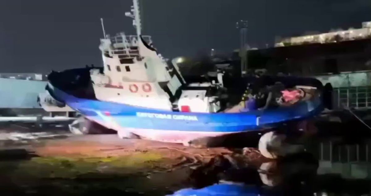 Судно береговой охраны завалилось на бок на пирсе в Петропавловске-Камчатском. На опубликованных кадрах видно, что в момент происшествия на палубе находились люди.