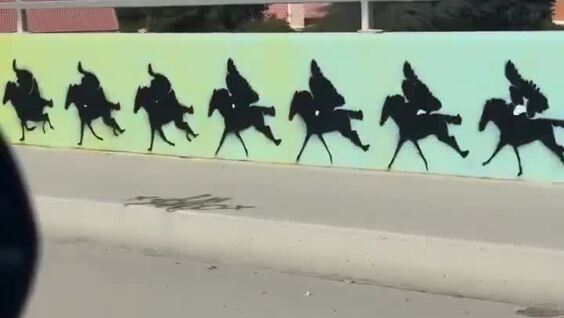 На одной из улиц городка Палм-Дезерт (штат Калифорния, США) можно найти рисунок с эффектом зоотропа. Если ехать вдоль рисунка с определённой скоростью, то он «оживает».