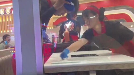 Посетители тайского ресторана стали свидетелями необычного зрелища: один из официантов убирал стол так быстро, что его движения напоминали ускоренную съёмку.