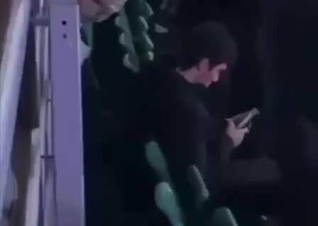 Приезжий не захотел вставать под гимн России и смотрел видео на телефоне. Нескольким парням не понравилось такое поведение. Они подошли к иностранному специалисту и помогли встать.