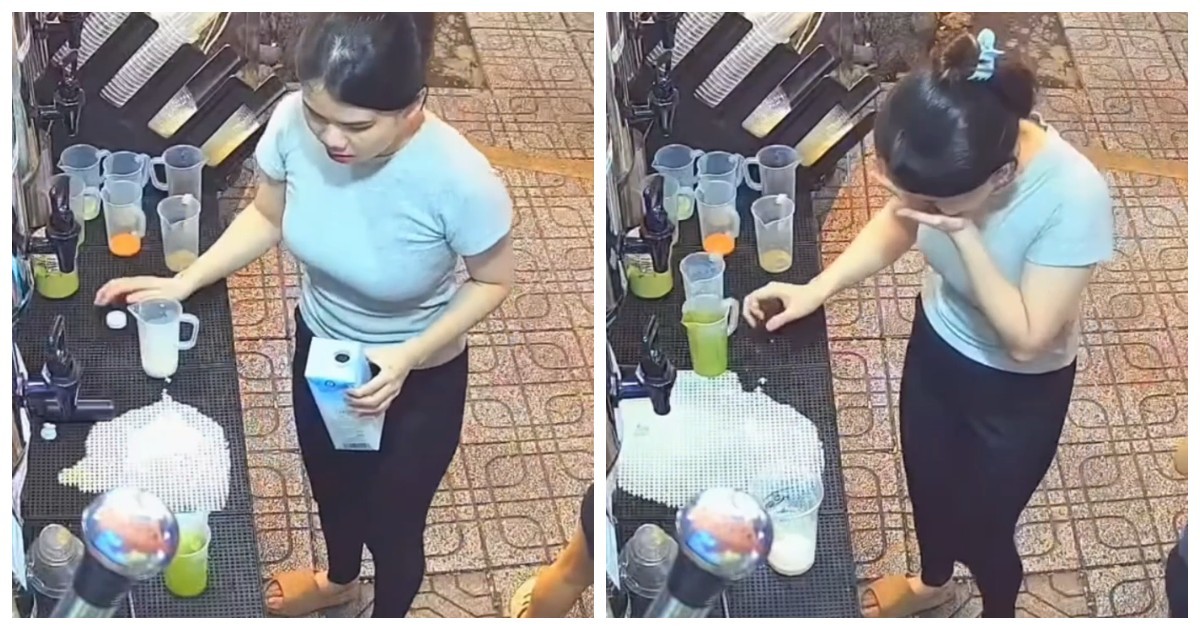 Бывает, что день идёт не по плану — и даже простая задача становится испытанием. Эта девушка дважды пыталась налить молоко в стакан, и оба раза оно растеклось по столу. Иногда хочется только вздохнуть и начать с чистого листа… и с новой тряпкой.