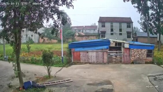 Камера наблюдения запечатлела эпизод из жизни мужчины, который он предпочел бы забыть. Герой видео неправильно поставил лестницу и очень скоро оказался на земле.