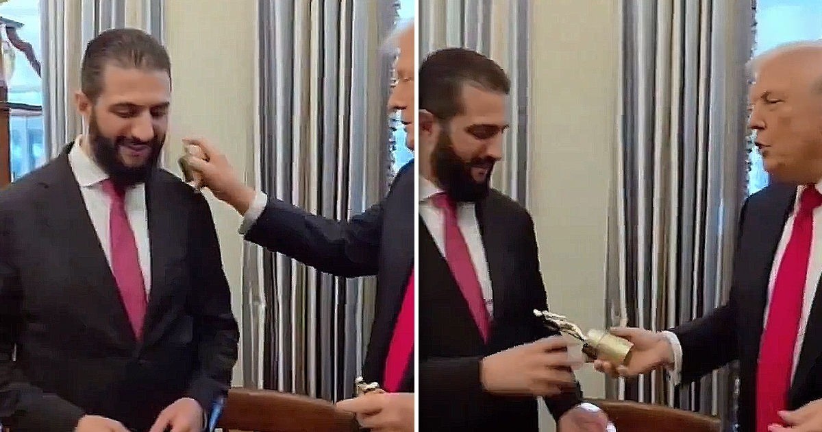 Президент США Дональд Трамп опрыскал духами президента Сирии Ахмеда аль-Шараа и его делегацию во время официальной встречи. Инцидент зафиксировали на видео, которое появилось в соцсетях.