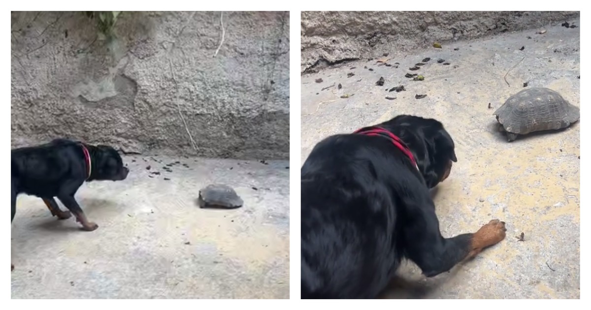 Владельцы собаки запечатлели первую встречу питомца с черепахой. Собака продемонстрировала целую гамму эмоций — от страха до непреодолимого любопытства.