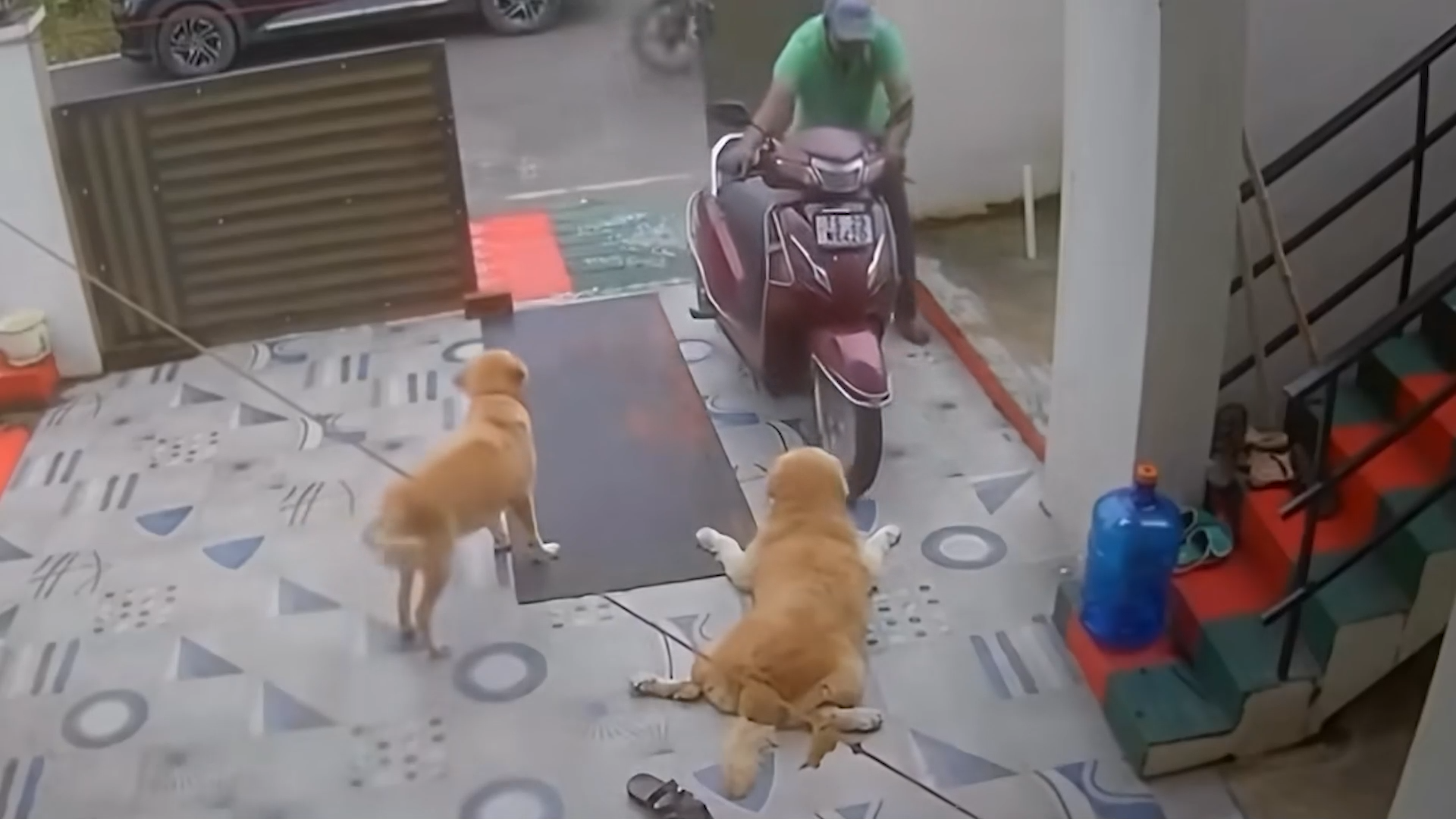 На видео с камеры наблюдения видно, как собака лежит в проходе, а мужчина подъезжает на скутере. Когда скутер слегка касается одной из лап, пёс театрально переворачивается и поднимает другую, нетронутую лапу, будто испытывает боль — всё для того, чтобы привлечь внимание и получить поглаживание.