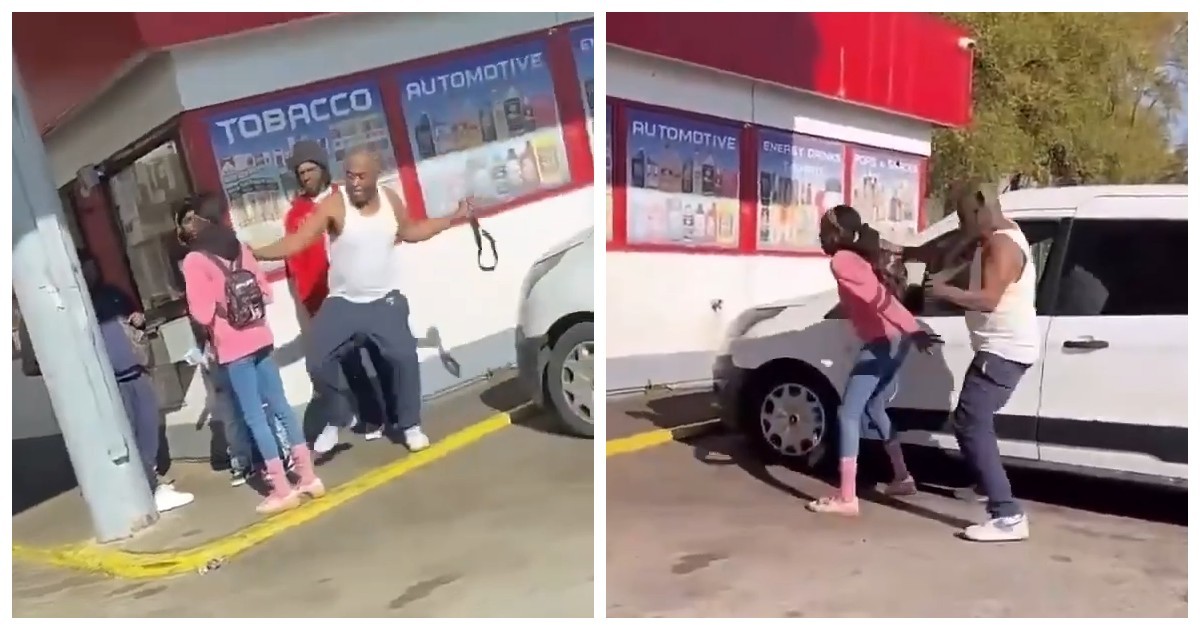 Мужчина увидел, что его дочь курит, и в общественном месте пытается наглядно показать последствия привычки. Он прибегает к телесному наказанию с использованием ремня, сопровождая это попыткой объяснить вред курения.