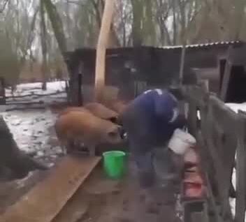 На этом необычном видео пенсионер с военным прошлым показывает, что привычка отдавать приказы остаётся с человеком на всю жизнь. Он кормит свиней, но делает это по «военному уставу»: сначала требует от них ждать, затем командует приступить к еде. Кажется, даже животные понимают дисциплину!