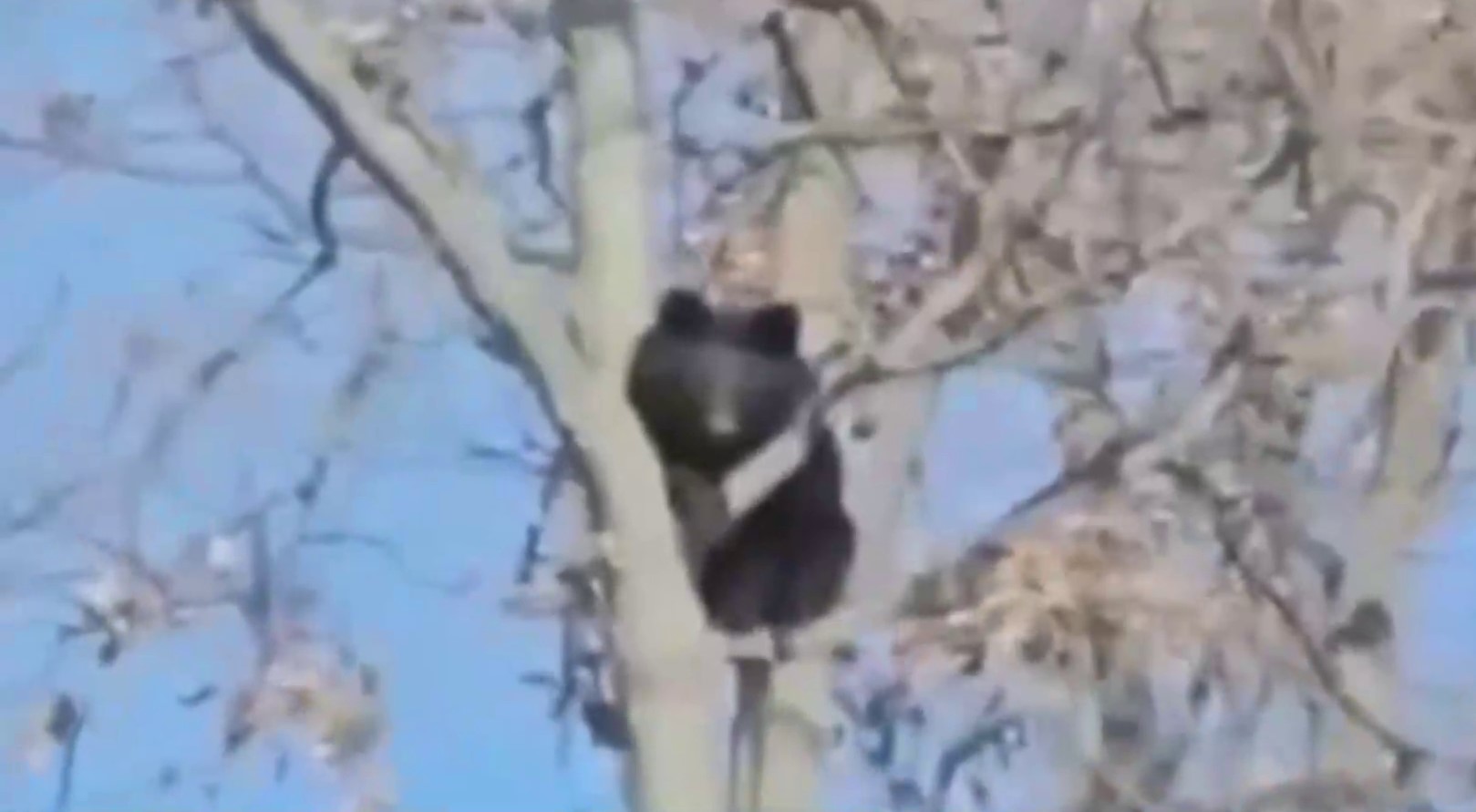 "Висит, смотрит на нас, вот гаденыш": медведь залез на дерево и не спускается уже двое суток в Приморье.