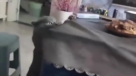 Подборка видео, в которых коты и кошки пытаются стащить со стола хозяйскую еду и не только.