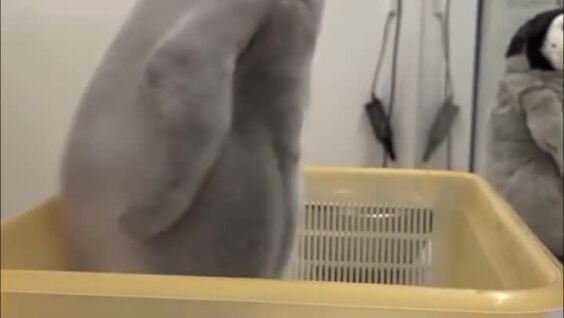 Работник японского океанариума продемонстрировал процесс взвешивание детёныша королевского пингвина.
