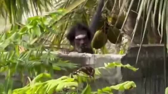 Туристы купаются и наслаждаются отдыхом на пляже, не подозревая, что за забором за ними наблюдает представитель местного первобытного племени.
