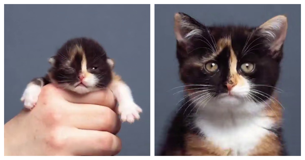 Чужие дети взрослеют быстро, а уж чужие котики — тем более! Милый котёнок с красивым окрасом за 17 секунд превратился в не менее симпатичную кошку.